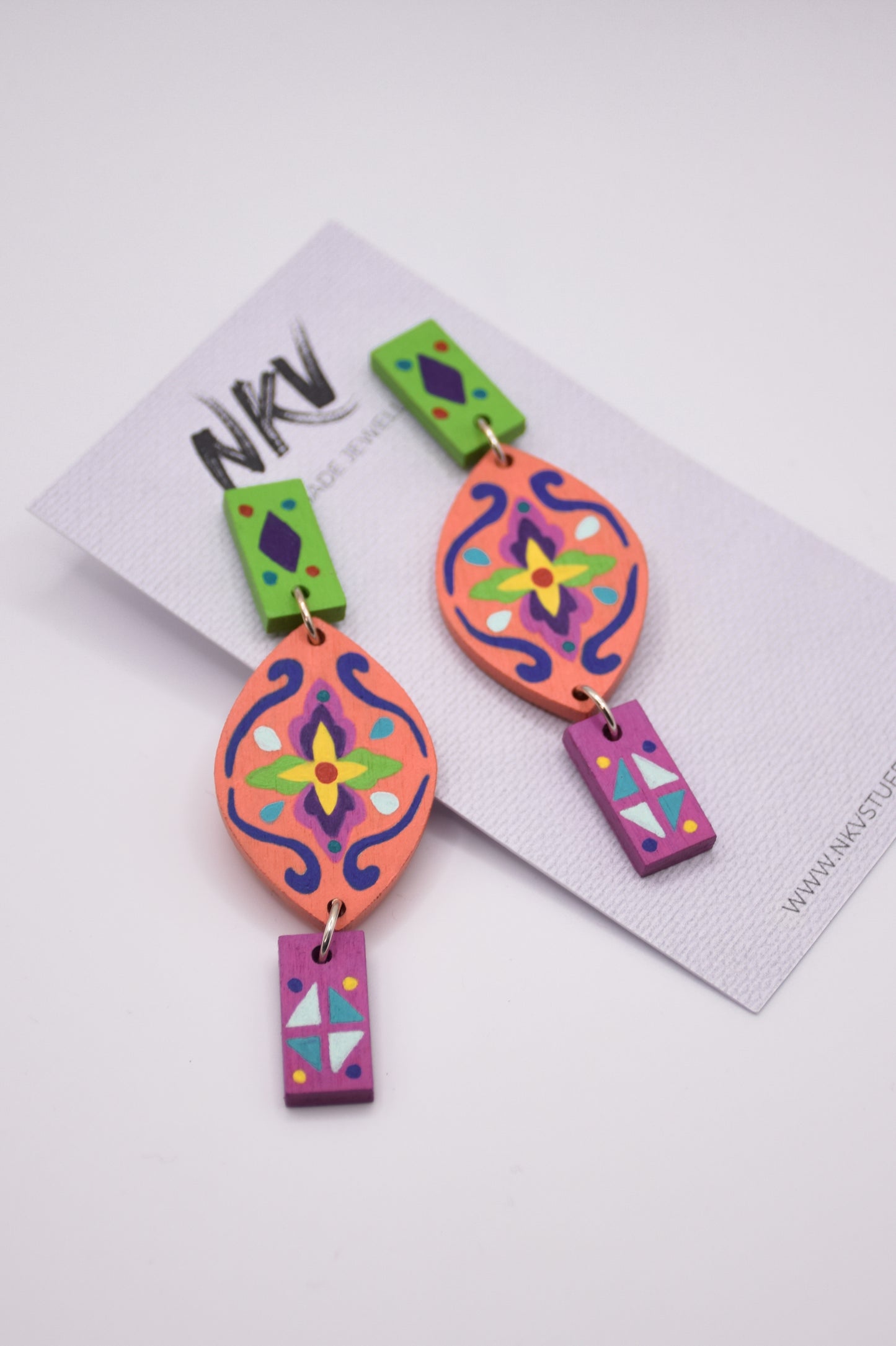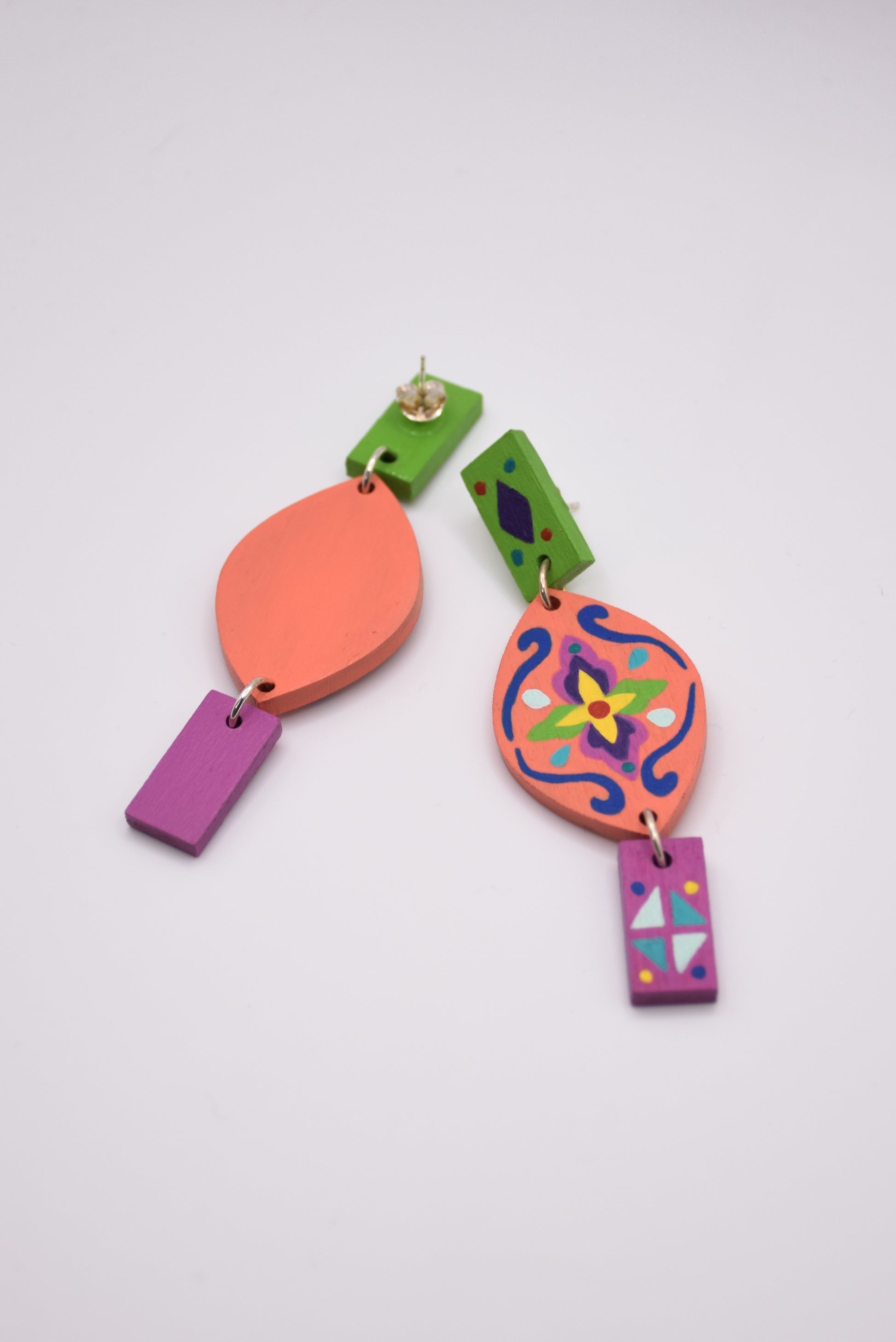 Each earring is crafted from lightweight wood and hand-painted with waterproof, skin-friendly, UV-protected paints for vibrant, lasting colours.